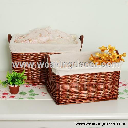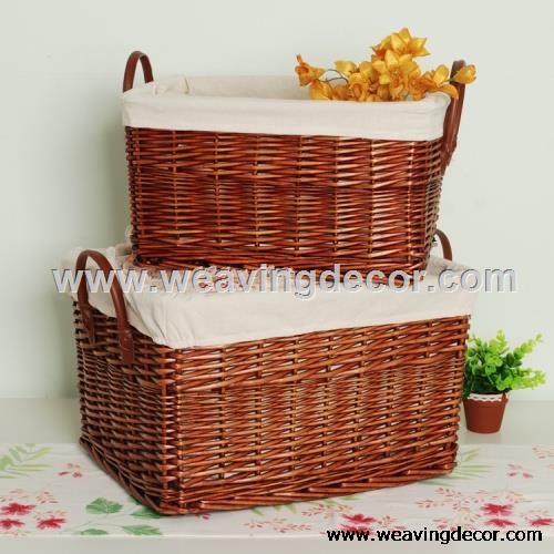 Cheap natural storage basket hamper wicker basket fruit bread basket decoration with neat liner: