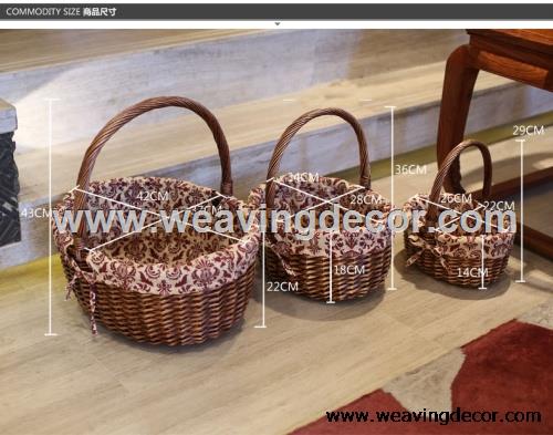 Cheap natural storage basket hamper wicker basket fruit bread basket decoration with neat liner: